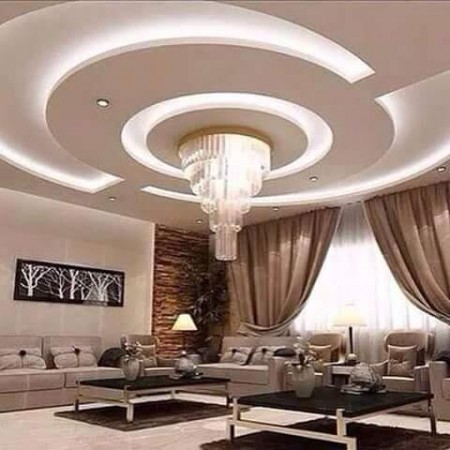 صور ديكورات اسقف معلقة غرف جلوس ورسبشنات اشكال دائرية 2